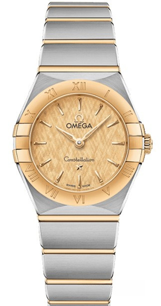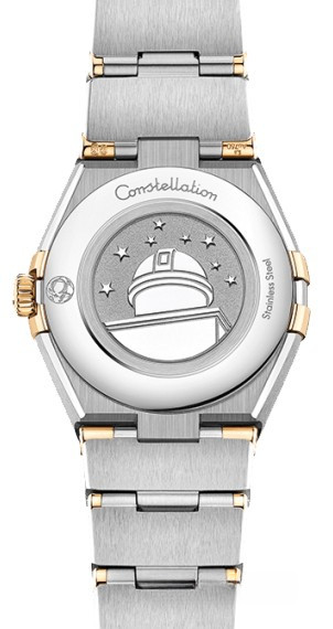 Характерными элементами выразительного и всегда актуального дизайна часов OMEGA Constellation являются узнаваемые полукруглые скосы вверху и внизу корпуса, боковые "скобки" и интегрированный браслет. Модель из 18-каратного желтого золота и нержавеющей стали имеет корпус диаметром 25 мм, безель с выгравированными римскими цифрами, циферблат цвета шампанского с шелковистым узором и устойчивое к царапинам сапфировое стекло. Стрелки, логотип OMEGA, звезда Constellation и индексы также выполнены из 18-каратного желтого золота. В часы установлен механизм OMEGA 4061, а их заднюю крышку украшает рельефный медальон с изображением обсерватории.