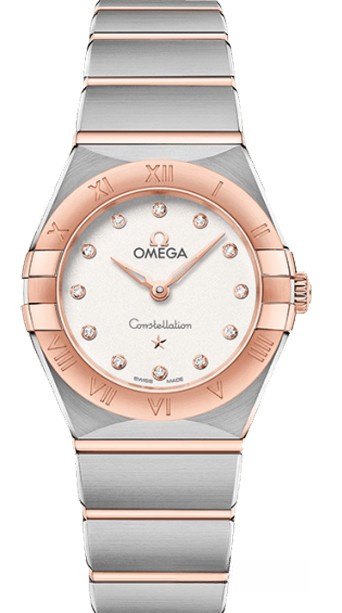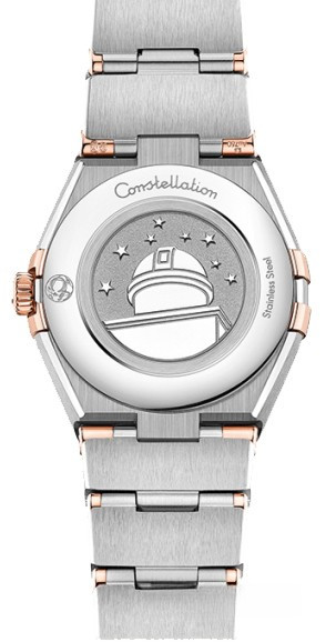 Характерными элементами выразительного и всегда актуального дизайна часов OMEGA Constellation являются узнаваемые полукруглые скосы вверху и внизу корпуса, боковые "скобки" и интегрированный браслет. Модель из 18-каратного золота Sedna™ и нержавеющей стали имеет корпус диаметром 25 мм, безель с выгравированными римскими цифрами, серебристо-белый циферблат с бриллиантовыми часовыми индексами и устойчивое к царапинам сапфировое стекло. Стрелки, логотип OMEGA, звезда Constellation и оправа бриллиантов также выполнены из 18-каратного золота Sedna™. В часы установлен механизм OMEGA 4061, а их заднюю крышку украшает рельефный медальон с изображением обсерватории.