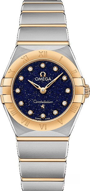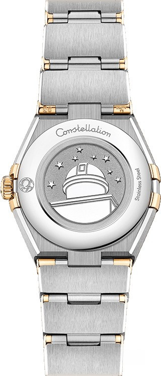 Характерными элементами выразительного и всегда актуального дизайна часов OMEGA Constellation являются узнаваемые полукруглые скосы вверху и внизу корпуса, боковые "скобки" и интегрированный браслет. Модель из нержавеющей стали и желтого золота 18к имеет корпус диаметром 25 мм, циферблат из синего авантюрина с бриллиантовыми часовыми индексами и устойчивое к царапинам сапфировое стекло. В часы установлен механизм OMEGA 4061, а их заднюю крышку украшает рельефный медальон с изображением обсерватории. Часы комплектуются браслетом из нержавеющей стали и желтого золота 18к.