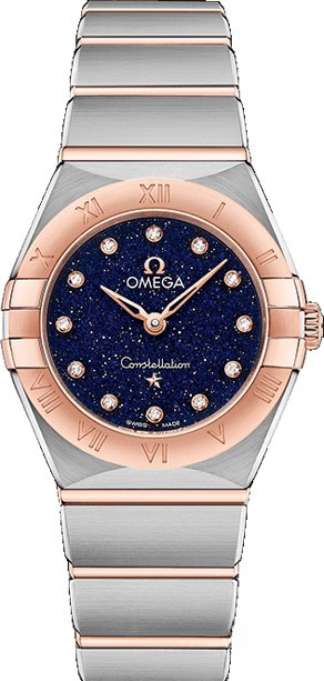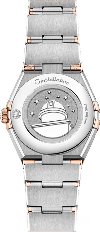 Характерными элементами выразительного и всегда актуального дизайна часов OMEGA Constellation являются узнаваемые полукруглые скосы вверху и внизу корпуса, боковые "скобки" и интегрированный браслет. Модель из нержавеющей стали и розового золота 18к имеет корпус диаметром 25 мм, циферблат из синего авантюрина с бриллиантовыми часовыми индексами и устойчивое к царапинам сапфировое стекло. В часы установлен механизм OMEGA 4061, а их заднюю крышку украшает рельефный медальон с изображением обсерватории. Часы комплектуются браслетом из нержавеющей стали и розового золота 18к.