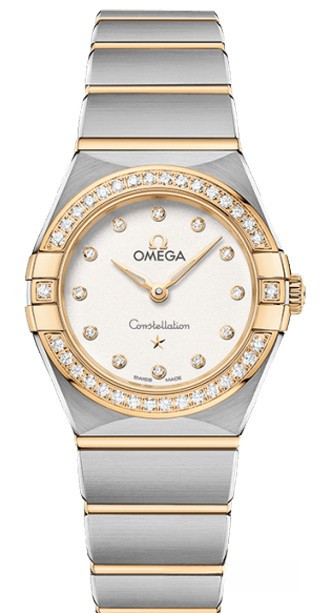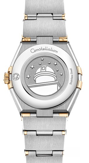 Характерными элементами выразительного и всегда актуального дизайна часов OMEGA Constellation являются узнаваемые полукруглые скосы вверху и внизу корпуса, боковые "скобки" и интегрированный браслет. Модель из 18-каратного желтого золота и нержавеющей стали имеет корпус диаметром 25 мм, инкрустированный бриллиантами безель, серебристо-белый циферблат с бриллиантовыми часовыми индексами и устойчивое к царапинам сапфировое стекло. Стрелки, логотип OMEGA, звезда Constellation и оправа бриллиантов также выполнены из 18-каратного желтого золота. В часы установлен механизм OMEGA 4061, а их заднюю крышку украшает рельефный медальон с изображением обсерватории.