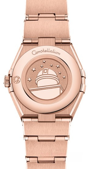 Характерными элементами выразительного и всегда актуального дизайна часов OMEGA Constellation являются узнаваемые полукруглые скосы вверху и внизу корпуса, боковые "скобки" и интегрированный браслет. Модель из 18-каратного золота Sedna™ имеет корпус диаметром 25 мм, безель с выгравированными римскими цифрами, белый перламутровый циферблат с бриллиантовыми часовыми индексами и устойчивое к царапинам сапфировое стекло. Браслет, стрелки, логотип OMEGA, звезда Constellation и оправа бриллиантов также выполнены из 18-каратного золота Sedna™. В часы установлен механизм OMEGA 4061, а их заднюю крышку украшает рельефный медальон с изображением обсерватории.