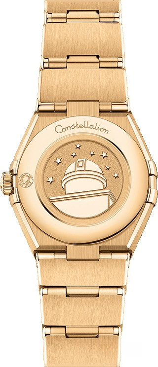 Характерными элементами выразительного и всегда актуального дизайна часов OMEGA Constellation являются узнаваемые полукруглые скосы вверху и внизу корпуса, боковые "скобки" и интегрированный браслет. Модель из желтого золота 18к имеет корпус диаметром 25 мм, циферблат из синего авантюрина с бриллиантовыми часовыми индексами и устойчивое к царапинам сапфировое стекло. В часы установлен механизм OMEGA 4061, а их заднюю крышку украшает рельефный медальон с изображением обсерватории. Часы комплектуются браслетом из желтого золота 18к. Безель из белых бриллиантов.