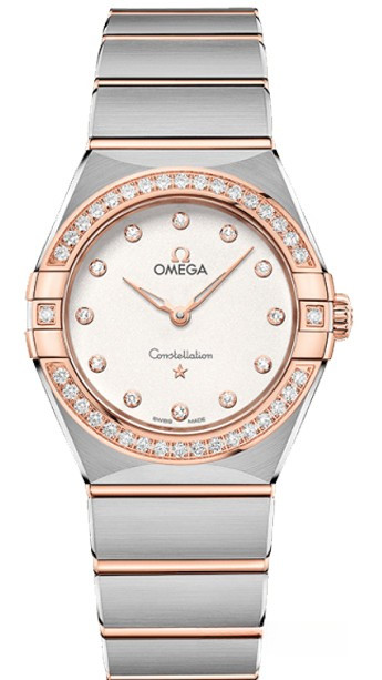 Характерными элементами выразительного и всегда актуального дизайна часов OMEGA Constellation являются узнаваемые полукруглые скосы вверху и внизу корпуса, боковые "скобки" и интегрированный браслет. Модель из 18-каратного золота Sedna™ и нержавеющей стали имеет корпус диаметром 28 мм, инкрустированный бриллиантами безель, коричневый циферблат с узором "солнечные лучи", бриллиантовые часовые индексы и устойчивое к царапинам сапфировое стекло. Стрелки, логотип OMEGA, звезда Constellation и оправа бриллиантов также выполнены из 18-каратного золота Sedna™. В часы установлен механизм OMEGA 4061, а их заднюю крышку украшает рельефный медальон с изображением обсерватории.