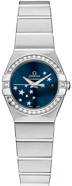 Названная в честь небесных светил коллекция Constellation с 1952 года является символом роскоши. Изысканные часы OMEGA Constellation Star, подобно своим предшественникам, воплощают собой точность и красоту. Модель из нержавеющей стали диаметром 24 мм имеет синий циферблат с радиальным сатинированием, украшенный накладными звездами из 18-каратного белого золота и обрамленный безелем с бриллиантовым паве. Часы оснащены кварцевым механизмом OMEGA 1376, и дополнены браслетом из того же металла, что и корпус.