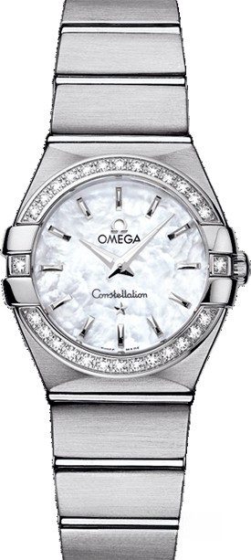 Необычайно эффектный дизайн часов OMEGA Constellation прошел проверку временем. Его характерной особенностью стали знаменитые скобки по бокам часового корпуса и впечатляющие циферблаты. Эта сатинированная модель имеет белый перламутровый циферблат, который виден сквозь устойчивое к царапинам сапфировое стекло. Украшенный бриллиантами безель закреплен на корпусе диаметром 24 мм из нержавеющей стали, который дополнен стальным браслетом. В этих часах используется высокоточный кварцевый механизм OMEGA, калибр 1376.