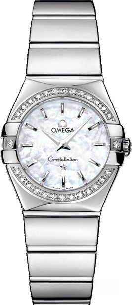 Необычайно эффектный дизайн часов OMEGA Constellation прошел проверку временем. Его характерной особенностью стали знаменитые скобки по бокам часового корпуса и впечатляющие циферблаты. Эта полированная модель имеет белый перламутровый циферблат, который виден сквозь устойчивое к царапинам сапфировое стекло. Украшенный бриллиантами безель закреплен на корпусе диаметром 24 мм из нержавеющей стали, который дополнен стальным браслетом. В этих часах используется высокоточный кварцевый механизм OMEGA, калибр 1376.