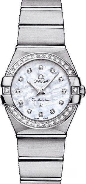 Необычайно эффектный дизайн часов OMEGA Constellation прошел проверку временем. Его характерной особенностью стали знаменитые скобки по бокам часового корпуса и впечатляющие циферблаты. Эта сатинированная модель имеет белый перламутровый циферблат с бриллиантовыми часовыми метками, который накрыт устойчивым к царапинам сапфировым стеклом. Украшенный бриллиантами безель закреплен на корпусе диаметром 24 мм из нержавеющей стали, который дополнен стальным браслетом. В этих часах используется высокоточный кварцевый механизм OMEGA, калибр 1376.