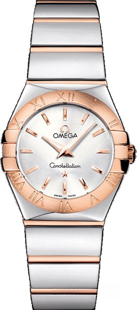 Необычайно эффектный дизайн часов OMEGA Constellation прошел проверку временем. Его характерной особенностью стали знаменитые скобки по бокам часового корпуса и впечатляющие циферблаты. Эта полированная модель имеет серебристый циферблат, который накрыт устойчивым к царапинам сапфировым стеклом. Безель из 18-каратного розового золота с выгравированными римскими цифрами закреплен на корпусе диаметром 24 мм из нержавеющей стали, который дополнен браслетом из нержавеющей стали и 18-каратного розового золота. В этих часах используется высокоточный кварцевый механизм OMEGA, калибр 1376.