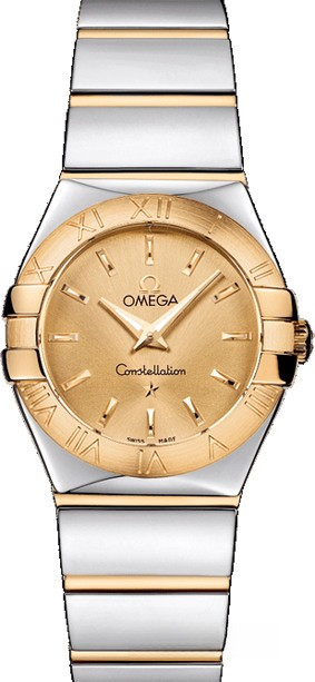Необычайно эффектный дизайн часов OMEGA Constellation прошел проверку временем. Его характерной особенностью стали знаменитые скобки по бокам часового корпуса и впечатляющие циферблаты. Эта полированная модель имеет циферблат цвета шампанского, который накрыт устойчивым к царапинам сапфировым стеклом. Безель из 18-каратного желтого золота с выгравированными римскими цифрами закреплен на корпусе диаметром 24 мм из нержавеющей стали, который дополнен браслетом из нержавеющей стали и 18-каратного желтого золота. В этих часах используется высокоточный кварцевый механизм OMEGA, калибр 1376.