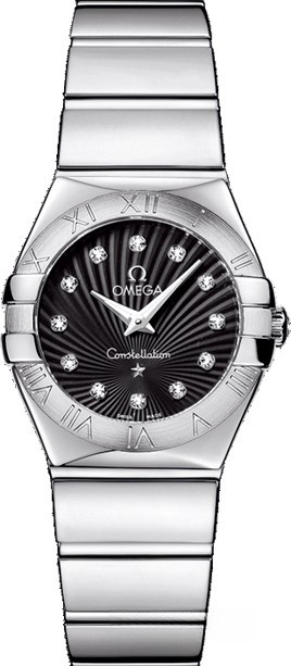 Необычайно эффектный дизайн часов OMEGA Constellation прошел проверку временем. Его характерной особенностью стали знаменитые скобки по бокам часового корпуса и впечатляющие циферблаты. Эта полированная модель имеет черный циферблат с узором Supernova и бриллиантовыми часовыми метками, который накрыт устойчивым к царапинам сапфировым стеклом. Безель с выгравированными римскими цифрами закреплен на корпусе диаметром 24 мм из нержавеющей стали. Часы дополняет браслет из нержавеющей стали. В этих часах используется высокоточный кварцевый механизм OMEGA, калибр 1376.