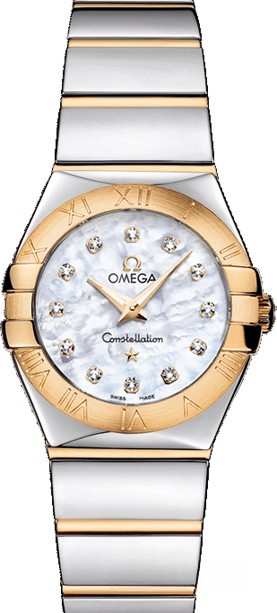 Необычайно эффектный дизайн часов OMEGA Constellation прошел проверку временем. Его характерной особенностью стали знаменитые скобки по бокам часового корпуса и впечатляющие циферблаты. Эта полированная модель имеет белый перламутровый циферблат с бриллиантовыми часовыми метками, который накрыт устойчивым к царапинам сапфировым стеклом. Безель из 18-каратного желтого золота с выгравированными римскими цифрами закреплен на корпусе диаметром 24 мм из нержавеющей стали, который дополнен браслетом из нержавеющей стали и 18-каратного желтого золота. В этих часах используется высокоточный кварцевый механизм OMEGA, калибр 1376.