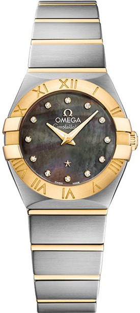 Названная в честь небесных светил коллекция Constellation с 1952 года является символом роскоши. При создании этой серии мастера OMEGA обратились не только к темам неба, но и морских глубин: циферблаты часов изготовлены из перламутра с острова Таити. Циферблат модели диаметром 24 мм украшен 12 бриллиантовыми часовыми метками в оправе из 18-каратного желтого золота, которая идеально сочетается с полированными гранеными стрелками. Корпус и браслет изготовлены из нержавеющей стали и 18-каратного желтого золота. Ставшие характерной особенностью коллекции Constellation знаменитые скобки расположены на безеле с римскими цифрами в тон. В модели используется кварцевый часовой механизм OMEGA, калибр 1376. Матовая задняя крышка корпуса украшена рельефным медальоном с изображением обсерватории.