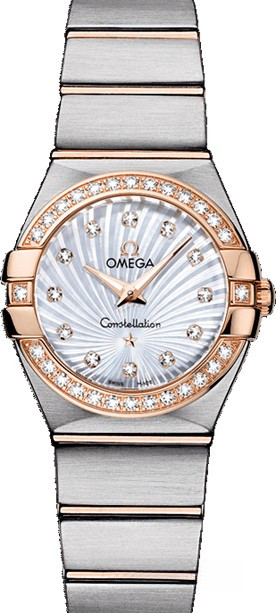 Необычайно эффектный дизайн часов OMEGA Constellation прошел проверку временем. Его характерной особенностью стали знаменитые скобки по бокам часового корпуса и впечатляющие циферблаты. Эта сатинированная модель имеет белый перламутровый циферблат с узором Supernova и бриллиантовыми часовыми метками, который накрыт устойчивым к царапинам сапфировым стеклом. Украшенный бриллиантами безель из 18-каратного розового золота закреплен на корпусе диаметром 24 мм из нержавеющей стали, который дополнен браслетом из нержавеющей стали и 18-каратного розового золота. В этих часах используется высокоточный кварцевый механизм OMEGA, калибр 1376.