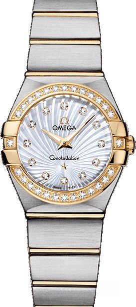 Необычайно эффектный дизайн часов OMEGA Constellation прошел проверку временем. Его характерной особенностью стали знаменитые скобки по бокам часового корпуса и впечатляющие циферблаты. Эта сатинированная модель имеет белый перламутровый циферблат с узором Supernova и бриллиантовыми часовыми метками, который накрыт устойчивым к царапинам сапфировым стеклом. Украшенный бриллиантами безель из 18-каратного желтого золота закреплен на корпусе диаметром 24 мм из нержавеющей стали, который дополнен браслетом из нержавеющей стали и 18-каратного желтого золота. В этих часах используется высокоточный кварцевый механизм OMEGA, калибр 1376.