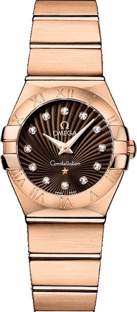 Необычайно эффектный дизайн часов OMEGA Constellation прошел проверку временем. Его характерной особенностью стали знаменитые скобки по бокам часового корпуса и впечатляющие циферблаты. Эта сатинированная модель имеет коричневый циферблат с узором Supernova и бриллиантовыми часовыми метками, который накрыт устойчивым к царапинам сапфировым стеклом. Безель с выгравированными римскими цифрами закреплен на корпусе диаметром 24 мм из 18-каратного розового золота. Часы дополняет браслет из 18-каратного розового золота. В этих часах используется высокоточный кварцевый механизм OMEGA, калибр 1376.
