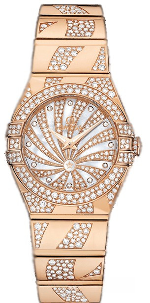 Необычайно эффектный дизайн часов OMEGA Constellation прошел проверку временем. Его характерной особенностью стали знаменитые скобки по бокам часового корпуса и впечатляющие циферблаты. Эта роскошная модель имеет украшенный бриллиантами циферблат из 18-каратного золота с белым перламутровым узором Supernova, накрытый устойчивым к царапинам сапфировым стеклом. Бeзель с паве из разноразмерных бриллиантов закреплен на корпусе диаметром 24 мм из 18-каратного розового золота, который дополнен браслетом из 18-каратного розового золота с бриллиантовым узором Supernova, продолжающим рисунок циферблата. В этих часах с более чем 600 бриллиантами используется высокоточный кварцевый механизм OMEGA, калибр 1376.