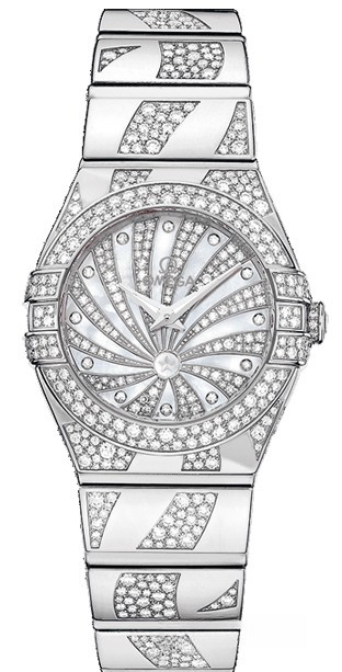 Необычайно эффектный дизайн часов OMEGA Constellation прошел проверку временем. Его характерной особенностью стали знаменитые скобки по бокам часового корпуса и впечатляющие циферблаты. Эта роскошная модель имеет украшенный бриллиантами циферблат из 18-каратного золота с белым перламутровым узором Supernova, накрытый устойчивым к царапинам сапфировым стеклом. Бeзель с паве из разноразмерных бриллиантов закреплен на корпусе диаметром 24 мм из 18-каратного белого золота, который дополнен браслетом из 18-каратного белого золота с бриллиантовым узором Supernova, продолжающим рисунок циферблата. В этих часах с более чем 600 бриллиантами используется высокоточный кварцевый механизм OMEGA, калибр 1376.