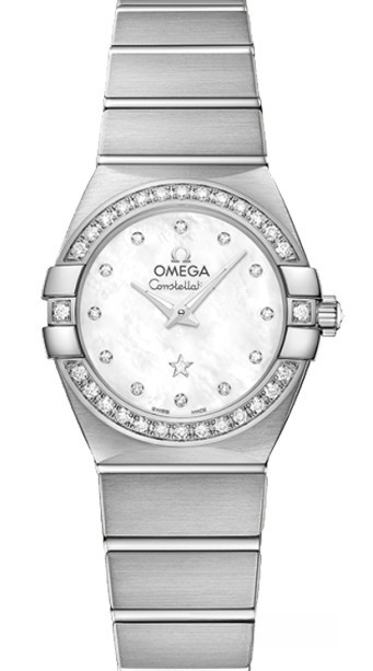 Необычайно эффектный дизайн часов OMEGA Constellation прошел проверку временем. Его характерной особенностью стали знаменитые скобки по бокам часового корпуса и впечатляющие циферблаты. Эта полированная модель имеет белый перламутровый циферблат с бриллиантовыми часовыми метками, который накрыт устойчивым к царапинам сапфировым стеклом. Безель из 18-каратного белого золота с белыми бриллиантами закреплен на корпусе диаметром 24 мм из белого золота 18к, который дополнен браслетом из 18-каратного белого золота. В этих часах используется высокоточный кварцевый механизм OMEGA, калибр 1376.