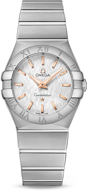 Необычайно эффектный дизайн часов OMEGA Constellation прошел проверку временем. Его характерной особенностью стали знаменитые скобки по бокам часового корпуса и впечатляющие циферблаты. Данная модель имеет серебристый циферблат. Безель из нержавеющей стали с выгравированными римскими цифрами закреплен на корпусе диаметром 27 мм из нержавеющей стали, который дополнен стальным браслетом. В часах используется кварцевый часовой механизм OMEGA, калибр 1376.