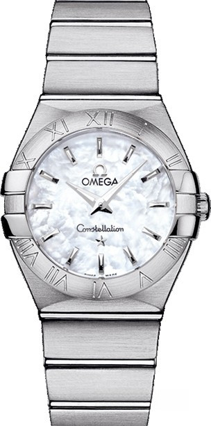 Необычайно эффектный дизайн часов OMEGA Constellation прошел проверку временем. Его характерной особенностью стали знаменитые скобки по бокам часового корпуса и впечатляющие циферблаты. Эта сатинированная модель имеет белый перламутровый циферблат, который накрыт устойчивым к царапинам сапфировым стеклом. Безель с выгравированными римскими цифрами закреплен на корпусе диаметром 27 мм из нержавеющей стали. Часы дополняет браслет из нержавеющей стали. В этих часах используется высокоточный кварцевый механизм OMEGA, калибр 1376.