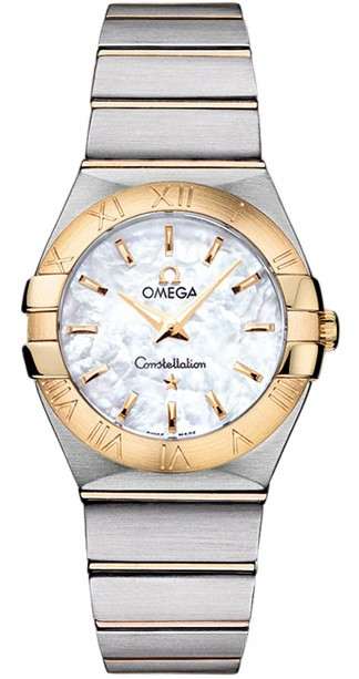 Необычайно эффектный дизайн часов OMEGA Constellation прошел проверку временем. Его характерной особенностью стали знаменитые скобки по бокам часового корпуса и впечатляющие циферблаты. Эта сатинированная модель имеет белый перламутровый циферблат, который накрыт устойчивым к царапинам сапфировым стеклом. Безель из 18-каратного желтого золота с выгравированными римскими цифрами закреплен на корпусе диаметром 27 мм из нержавеющей стали, который дополнен браслетом из нержавеющей стали и 18-каратного желтого золота. В этих часах используется высокоточный кварцевый механизм OMEGA, калибр 1376.