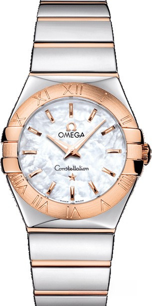 Необычайно эффектный дизайн часов OMEGA Constellation прошел проверку временем. Его характерной особенностью стали знаменитые скобки по бокам часового корпуса и впечатляющие циферблаты. Эта полированная модель имеет белый перламутровый циферблат, который накрыт устойчивым к царапинам сапфировым стеклом. Безель из 18-каратного розового золота с выгравированными римскими цифрами закреплен на корпусе диаметром 27 мм из нержавеющей стали, который дополнен браслетом из нержавеющей стали и 18-каратного розового золота. В этих часах используется высокоточный кварцевый механизм OMEGA, калибр 1376.
