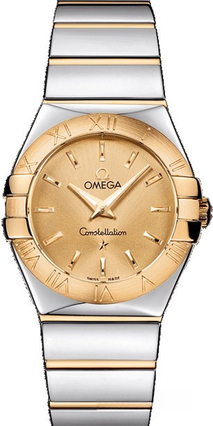 Необычайно эффектный дизайн часов OMEGA Constellation прошел проверку временем. Его характерной особенностью стали знаменитые скобки по бокам часового корпуса и впечатляющие циферблаты. Эта полированная модель имеет циферблат цвета шампанского, который накрыт устойчивым к царапинам сапфировым стеклом. Безель из 18-каратного желтого золота закреплен на корпусе диаметром 27 мм из нержавеющей стали, который дополнен браслетом из нержавеющей стали и 18-каратного желтого золота. В этих часах используется высокоточный кварцевый механизм OMEGA, калибр 1376.