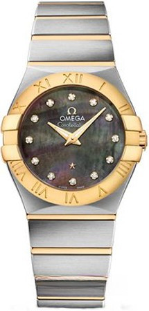 Названная в честь небесных светил коллекция Constellation с 1952 года является символом роскоши. При создании этой серии мастера OMEGA обратились не только к темам неба, но и морских глубин: циферблаты часов изготовлены из перламутра с острова Таити. Циферблат модели диаметром 27 мм украшен 12 бриллиантовыми часовыми метками в оправе из 18-каратного желтого золота, которая идеально сочетается с полированными гранеными стрелками. Корпус и браслет изготовлены из нержавеющей стали и 18-каратного желтого золота. Ставшие характерной особенностью коллекции Constellation знаменитые скобки расположены на безеле с римскими цифрами в тон. В модели используется кварцевый часовой механизм OMEGA, калибр 1376. Матовая задняя крышка корпуса украшена рельефным медальоном с изображением обсерватории.