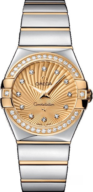 Необычайно эффектный дизайн часов OMEGA Constellation прошел проверку временем. Его характерной особенностью стали знаменитые скобки по бокам часового корпуса и впечатляющие циферблаты. Эта полированная модель имеет циферблат цвета шампанского с узором Supernova и бриллиантовыми часовыми метками, который накрыт устойчивым к царапинам сапфировым стеклом. Украшенный бриллиантами безель из 18-каратного желтого золота закреплен на корпусе диаметром 27 мм из нержавеющей стали, который дополнен браслетом из нержавеющей стали и 18-каратного желтого золота. В этих часах используется высокоточный кварцевый механизм OMEGA, калибр 1376.
