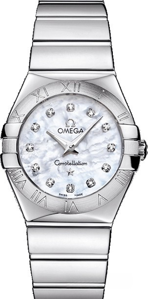 Необычайно эффектный дизайн часов OMEGA Constellation прошел проверку временем. Его характерной особенностью стали знаменитые скобки по бокам часового корпуса и впечатляющие циферблаты. Эта полированная модель имеет белый перламутровый циферблат с бриллиантовыми часовыми метками, который накрыт устойчивым к царапинам сапфировым стеклом. Безель с выгравированными римскими цифрами закреплен на корпусе диаметром 27 мм из нержавеющей стали. Часы дополняет браслет из нержавеющей стали. В этих часах используется высокоточный кварцевый механизм OMEGA, калибр 1376.