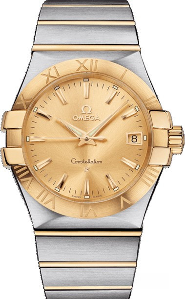 Необычайно эффектный дизайн часов OMEGA Constellation прошел проверку временем. Его характерной особенностью стали знаменитые скобки по бокам часового корпуса и впечатляющие циферблаты. Эта модель имеет циферблат цвета шампанского с окошком указателя даты в положении «3 часа» и устойчивым к царапинам сапфировым стеклом. Безель из 18-каратного желтого золота с выгравированными римскими цифрами закреплен на корпусе диаметром 35 мм из нержавеющей стали, который дополнен браслетом из нержавеющей стали и 18-каратного желтого золота. В этих часах используется высокоточный кварцевый механизм OMEGA, калибр 1532.