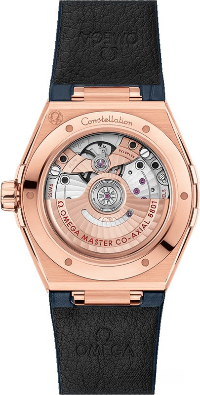 Характерными элементами выразительного и всегда актуального дизайна часов OMEGA Constellation являются узнаваемые полукруглые скосы вверху и внизу корпуса, а также боковые "скобки". Модель из 18-каратного золота Sedna™ имеет корпус диаметром 39 мм, безель с выгравированными римскими цифрами, синий циферблат с рельефным узором и шелковистой текстурой и окошком указателя даты в положении "6 часов". Стрелки, логотип OMEGA, звезда Constellation и индексы также выполнены из 18-каратного золота Sedna™. Часы с синим кожаным ремешком оснащены калибром OMEGA Co-Axial Master Chronometer 8801, который можно рассмотреть сквозь устойчивое к царапинам выпуклое сапфировое стекло задней крышки корпуса.