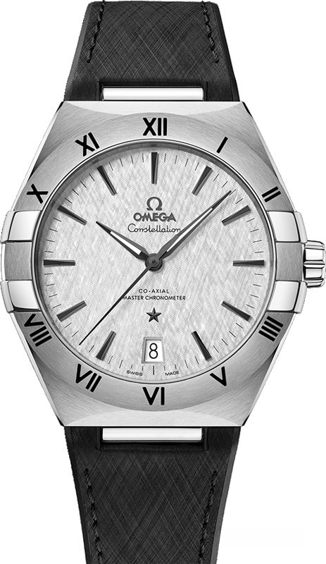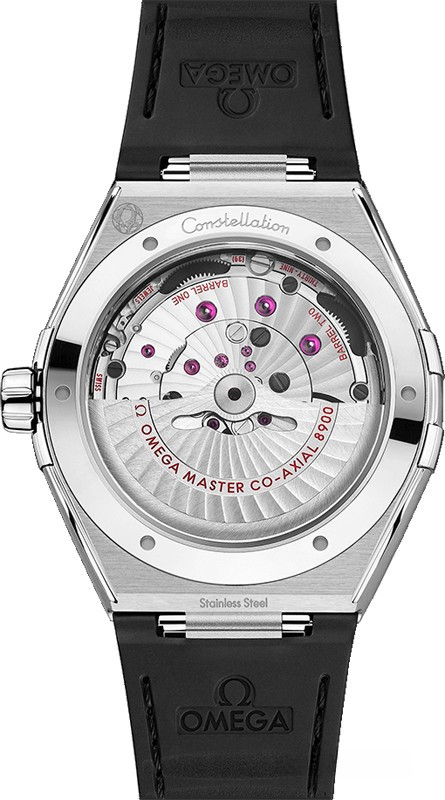 Характерными элементами выразительного и всегда актуального дизайна часов Omega Constellation являются узнаваемые полукруглые скосы вверху и внизу корпуса, а также боковые "скобки". Модель из нержавеющей стали имеет корпус диаметром 41 мм, безель с цветными римскими цифрами, циферблат цвета серого родия с рельефным узором, шелковистой текстурой и окошком указателя даты в положении "6 часов". Стрелки, логотип Omega, звезда Constellation и граненые индексы выполнены в черном цвете. Часы с ремешком из черного каучука оснащены калибром Omega Co-Axial Master Chronometer 8900, который можно рассмотреть сквозь устойчивое к царапинам выпуклое сапфировое стекло задней крышки корпуса.