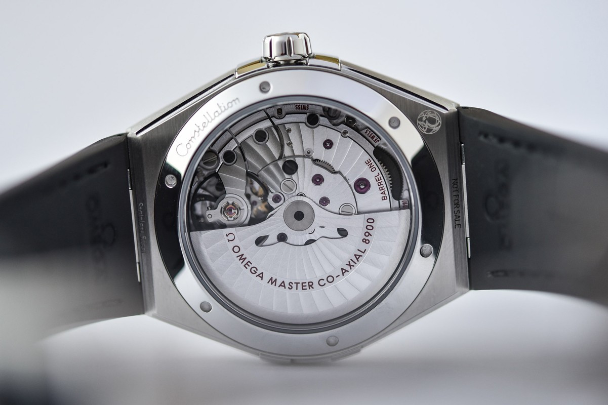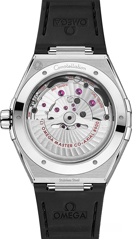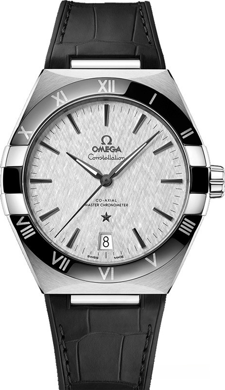 Характерными элементами выразительного и всегда актуального дизайна часов Omega Constellation являются узнаваемые полукруглые скосы вверху и внизу корпуса, а также боковые "скобки". Модель из нержавеющей стали имеет корпус диаметром 41 мм, безель с цветными римскими цифрами, циферблат цвета серого родия с рельефным узором, шелковистой текстурой и окошком указателя даты в положении "6 часов". Стрелки, логотип Omega, звезда Constellation и граненые индексы выполнены в черном цвете. Часы с ремешком из кожи аллигатора оснащены калибром Omega Co-Axial Master Chronometer 8900, который можно рассмотреть сквозь устойчивое к царапинам выпуклое сапфировое стекло задней крышки корпуса.