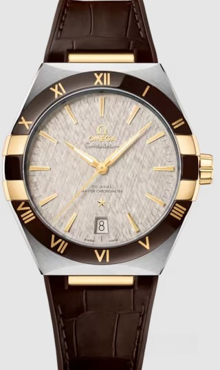 Характерными элементами выразительного и всегда актуального дизайна часов Omega Constellation являются узнаваемые полукруглые скосы вверху и внизу корпуса, а также боковые "скобки". Модель из нержавеющей стали и желтого золота 18к имеет корпус диаметром 41 мм, циферблат серого цвета, с окошком указателя даты в положении "6 часов". Стрелки, логотип Omega, звезда Constellation и граненые индексы выполнены в золотистом цвете. Часы с ремешком из кожи аллигатора с застежкой из нержавеющей стали оснащены Калибром Omega Co-Axial Master Chronometer 8900, который можно рассмотреть сквозь устойчивое к царапинам выпуклое сапфировое стекло задней крышки корпуса.