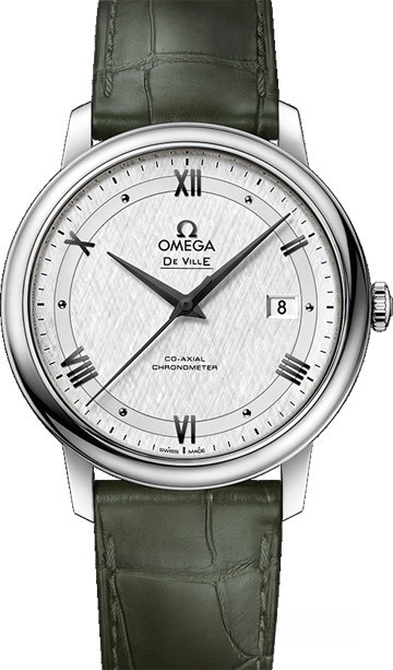 Коллекция Omega De Ville Prestige завоевала любовь поклонников бренда своим классическим элегантным дизайном. Входящие в нее модели отличаются чистотой линий, роскошной отделкой и вневременным дизайном. Эффектный серебристый гильошированный циферблат с окошком указателя даты в положении «6 часов» защищен устойчивым к царапинам сапфировым стеклом. Корпус диаметром 39,5 мм из нержавеющей стали дополнен ремешком из кожи аллигатора с вставкой из нержавеющей стали. Основу этой модели составляет коаксиальный Калибр 2500.