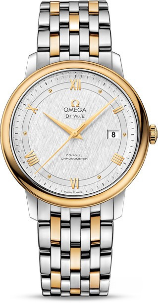 Коллекция Omega De Ville Prestige завоевала любовь поклонников бренда своим классическим элегантным дизайном. Входящие в нее модели отличаются чистотой линий, роскошной отделкой и вневременным дизайном. Эффектный серый циферблат с окошком указателя даты в положении «3 часа» защищен устойчивым к царапинам сапфировым стеклом. Корпус диаметром 39,5 мм из нержавеющей стали и желтого золота 18к дополнен браслетом из нержавеющей стали и желтого золота 18к. Основу этой модели составляет коаксиальный Калибр 2500.