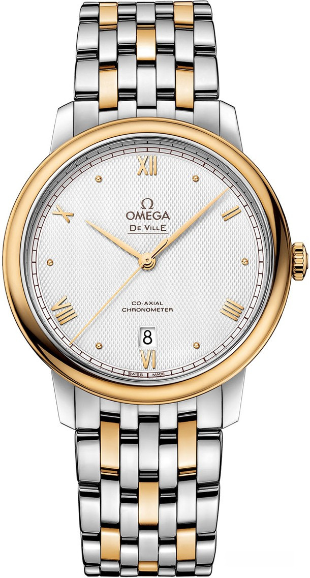 Коллекция Omega De Ville Prestige завоевала любовь поклонников бренда своим классическим элегантным дизайном. Входящие в нее модели отличаются чистотой линий, роскошной отделкой и вневременным дизайном. Эффектный белый гильошированный циферблат с окошком указателя даты в положении «6 часов» защищен устойчивым к царапинам сапфировым стеклом. Корпус диаметром 39,5 мм из нержавеющей стали и желтого золота 18к дополнен браслетом из нержавеющей стали и желтого золота 18к. Основу этой модели составляет коаксиальный Калибр 2500.