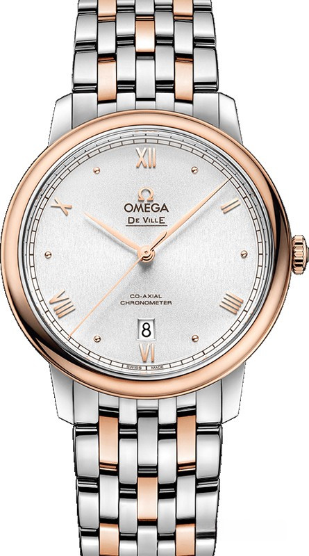 Коллекция Omega De Ville Prestige завоевала любовь поклонников бренда своим классическим элегантным дизайном. Входящие в нее модели отличаются чистотой линий, роскошной отделкой и вневременным дизайном. Эффектный серебристый циферблат с окошком указателя даты в положении «6 часов» защищен устойчивым к царапинам сапфировым стеклом. Корпус диаметром 39,5 мм из нержавеющей стали и розового золота 18к дополнен браслетом из нержавеющей стали и розового золота 18к. Основу этой модели составляет коаксиальный Калибр 2500.