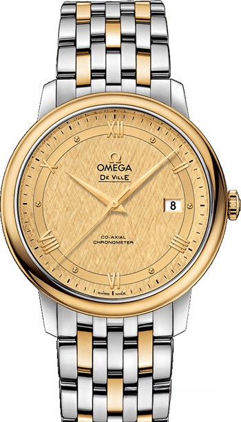 Коллекция Omega De Ville Prestige завоевала любовь поклонников бренда своим классическим элегантным дизайном. Входящие в нее модели отличаются чистотой линий, роскошной отделкой и вневременным дизайном. Эффектный золотистый гильошированный циферблат с окошком указателя даты в положении «6 часов» защищен устойчивым к царапинам сапфировым стеклом. Корпус диаметром 39,5 мм из нержавеющей стали и желтого золота 18к дополнен браслетом из нержавеющей стали и желтого золота 18к. Основу этой модели составляет коаксиальный Калибр 2500.