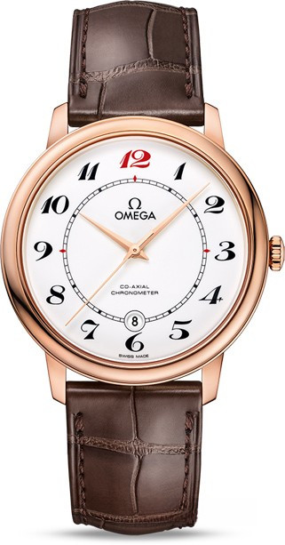 Коллекция Omega De Ville Prestige завоевала любовь поклонников бренда своим классическим элегантным дизайном. Входящие в нее модели отличаются чистотой линий, роскошной отделкой и вневременным дизайном. Эффектный белый циферблат с окошком указателя даты в положении «6 часов» защищен устойчивым к царапинам сапфировым стеклом. Корпус диаметром 39,5 мм из розового золота 18к дополнен ремешком из кожи аллигатора с вставкой из розового золота 18к. Основу этой модели составляет коаксиальный Калибр 2500.