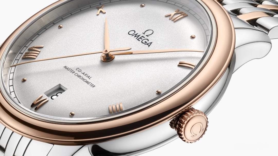 Часы Omega De Ville Prestige Date 40 mm представлены в корпусе размером 40 х 9.9 мм из нержавеющей стали и розового золота 18к водонепроницаемостью 30 метров. Внутри корпуса установлен автоматический механизм, Калибр 8800, обладающий запасом хода 55 часов. На серебристом циферблате отображаются часы, минуты, секунды, дата. Часы поставляются на браслете из нержавеющей стали и розового золота 18к.