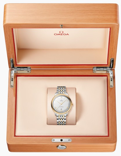 Часы Omega De Ville Prestige Date 40 mm представлены в корпусе размером 40 х 9.9 мм из нержавеющей стали и желтого золота 18к водонепроницаемостью 30 метров. Внутри корпуса установлен автоматический механизм, Калибр 8800, обладающий запасом хода 55 часов. На серебристом циферблате отображаются часы, минуты, секунды, дата. Часы поставляются на браслете из нержавеющей стали и желтого золота 18к.