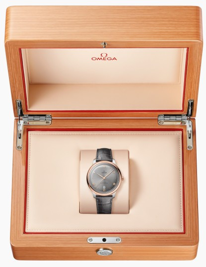 Часы Omega De Ville Prestige Date 40 mm представлены в корпусе размером 40 х 9.9 мм из нержавеющей стали и розового золота 18к водонепроницаемостью 30 метров. Внутри корпуса установлен автоматический механизм, Калибр 8800, обладающий запасом хода 55 часов. На сером циферблате отображаются часы, минуты, секунды, дата. Часы поставляются на ремешке из кожи аллигатора с застежкой из нержавеющей стали.