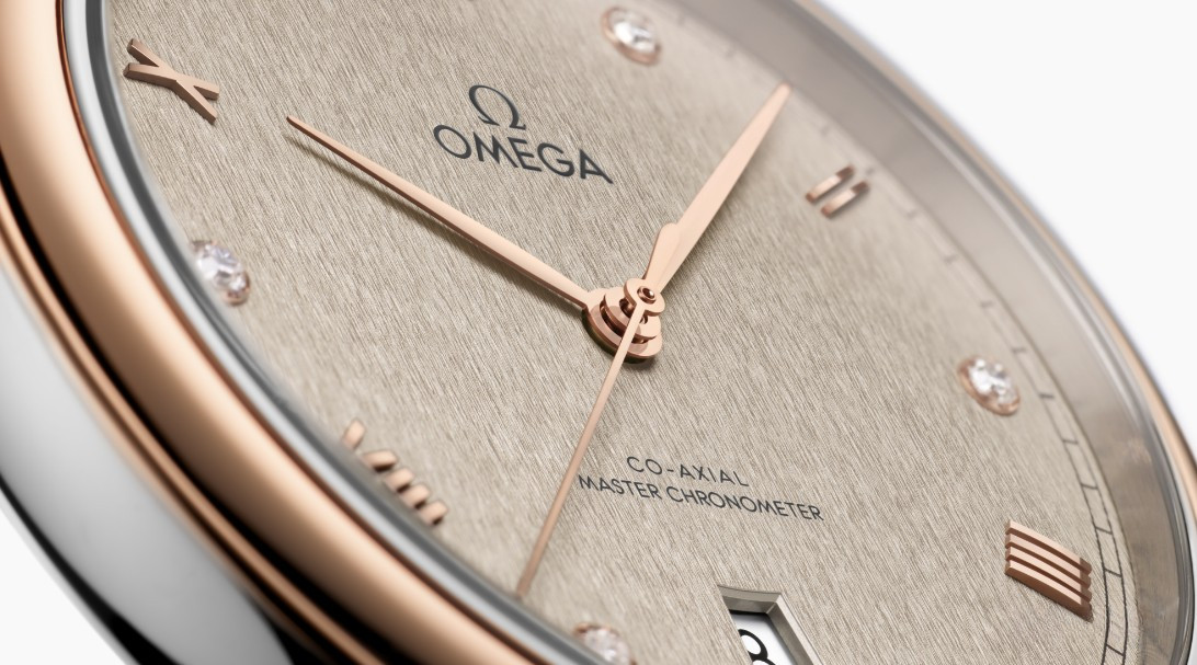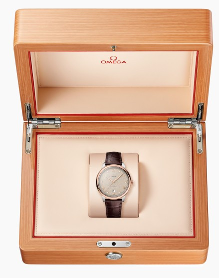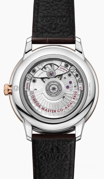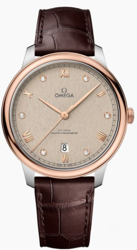 Часы Omega De Ville Prestige Date 40 mm представлены в корпусе размером 40 х 9.9 мм из нержавеющей стали и розового золота 18к водонепроницаемостью 30 метров. Внутри корпуса установлен автоматический механизм, Калибр 8800, обладающий запасом хода 55 часов. На золотистом циферблатес 6-ю белыми бриллиантами отображаются часы, минуты, секунды, дата. Часы поставляются на ремешке из кожи аллигатора с застежкой из нержавеющей стали.