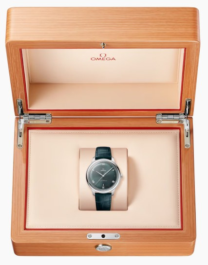 Часы Omega De Ville Prestige Date 40 mm представлены в корпусе размером 40 х 9.9 мм из нержавеющей стали водонепроницаемостью 30 метров. Внутри корпуса установлен автоматический механизм, Калибр 8800, обладающий запасом хода 55 часов. На зеленом циферблате отображаются часы, минуты, секунды, дата. Часы поставляются на ремешке из кожи аллигатора с застежкой из нержавеющей стали.