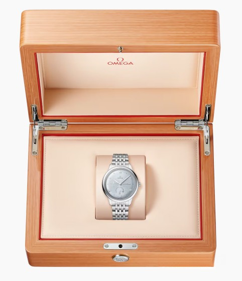Часы Omega De Ville Prestige Automatic 41 представлены в корпусе размером 41 х 10.8 мм из нержавеющей стали водонепроницаемостью 30 метров. Внутри корпуса установлен автоматический механизм, Калибр 8810, обладающий запасом хода 55 часов. На голубом циферблате отображаются часы, минуты, секунды, дата, запас хода. Часы поставляются на браслете из нержавеющей стали.