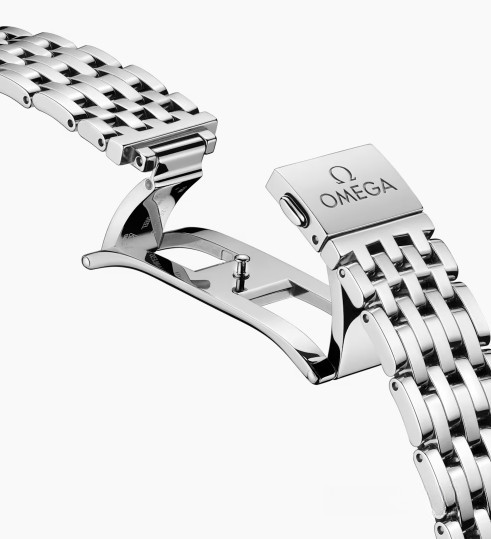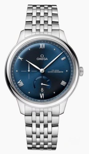 Часы Omega De Ville Prestige Automatic 41 представлены в корпусе размером 41 х 10.8 мм из нержавеющей стали водонепроницаемостью 30 метров. Внутри корпуса установлен автоматический механизм, Калибр 8810, обладающий запасом хода 55 часов. На синем циферблате отображаются часы, минуты, секунды, дата, запас хода. Часы поставляются на браслете из нержавеющей стали.