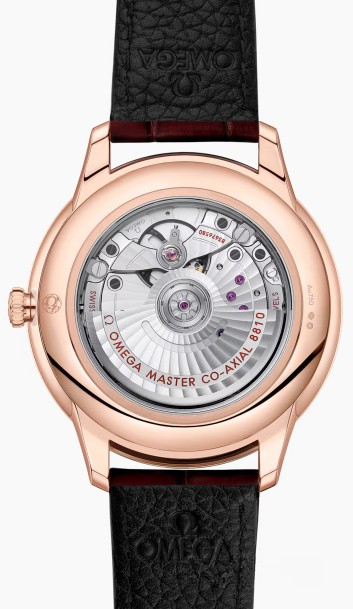 Часы Omega De Ville Prestige Automatic 41 представлены в корпусе размером 41 х 10.8 мм из розового золота 18к водонепроницаемостью 30 метров. Внутри корпуса установлен автоматический механизм, Калибр 8810, обладающий запасом хода 55 часов. На серебристом циферблате отображаются часы, минуты, секунды, дата, запас хода. Часы поставляются на ремешке из кожи аллигатора с золотой застежкой.